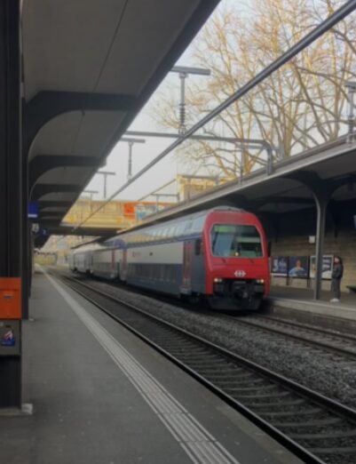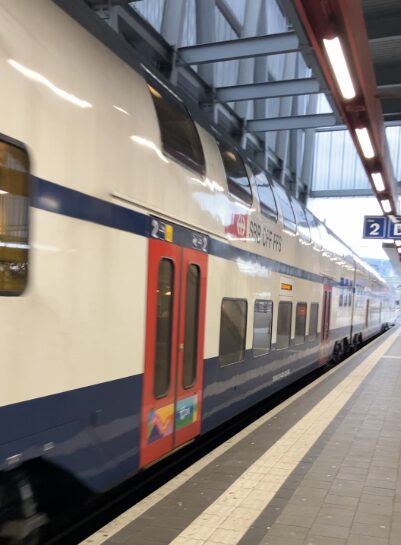 空港についたら、地下にある駅から電車に乗りましょう。券売機でZurich HBという駅を探して購入。S2/S16/S24のどれかに乗ればOK。ヨーロッパあるあるの、改札とかなくてホームに電車が来て乗るパターンなので、ホームに立っている駅員さんに聞いてみましょう。