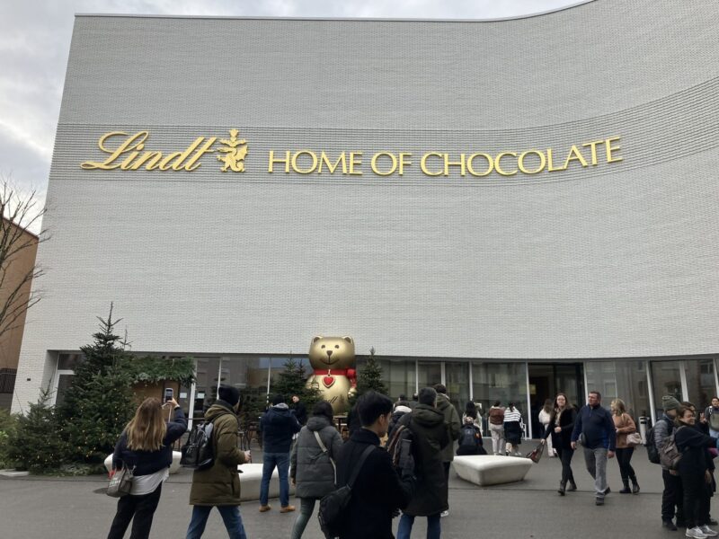 まずは事前にHPからチケットを買っておきましょう。現地の窓口でも買えるようですが、休暇シーズンはかなり満席らしいです。大きなチョコレートのオブジェ?やクマがエントランスでお出迎え、そこからリンツの歴史、製法、カカオへのこだわりの説明があり、試食や工場の製造過程を見ることができます。私はバスでいきましたが、電車や船で行く方法もあるようなので、Google Mapで調べてみてください。