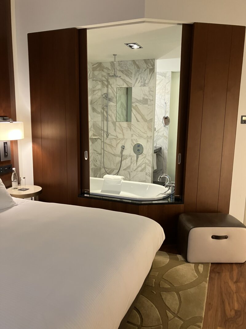 Park Hyatt。正面入口に隊列をなす高級車。そして正面入口にバックしてくるロールス・ロイス。夢の中かと勘違いするような、場違いなホテルに来てしまいました。豪華絢爛、でもそれは派手さではなく質実剛健。重厚な歴史と資産に裏打ちされたこの国、街にあるトップホテル。身の丈に合わない方、身分双方になるまで、なんていう言葉は好きではないので常に背伸びして経験していくスタイルのワタシですが、これは結構ビッくらポン。まあでも優雅に湯船に浮かんで1年分の疲れを癒やしましょう。この手のホテルにする必要もなかったのですが、ポイントが余っていたのと、私はたびに出る時にはほぼ必ず湯船があるホテルに泊まります。それは、お風呂に入ってリラックスすることも旅の目的だから。日本の生活から離れて久しいですが、やっぱり湯船に浸かる、これが一番ですね。湯治。