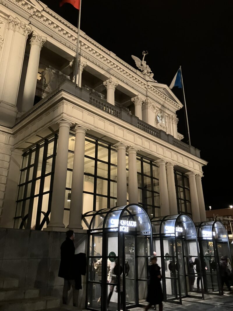 私は1人で行きましたが、他に1人の人は全く見当たらず。カーネギーホールのように開かれたクラシックも居心地が良いですが、チューリッヒのオペラ文化に対する敬意というか、社交の場というか、家族が正装をして集い、芸術を嗜む伝統が根付いていると強く感じました。息子、娘はドレスアップして、他の家族と優雅に語り合うようなチューリッヒの年末の家族と音楽の雰囲気が包む高貴な空気に少し居心地が悪くもあり、羨ましさも感じる夜となりました。